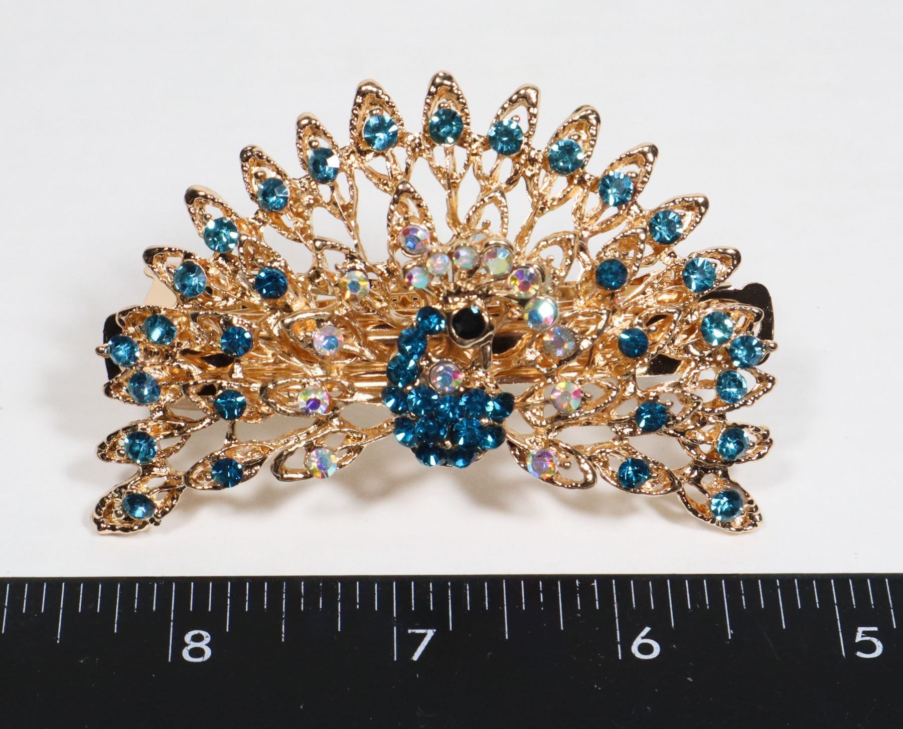 NEW PEACOCK RHINESTONE FRENCH CLIP