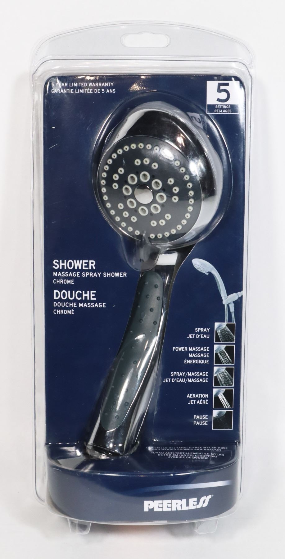 5 SETTINGS: SPRAY, POWER MASSAGE, SPRAY/ MASSAGE, AERATION, PAUSE. KIT INCLUDES HEAD, 60" HOSE, AND HYBRID SHOWER ARM BRACKET.