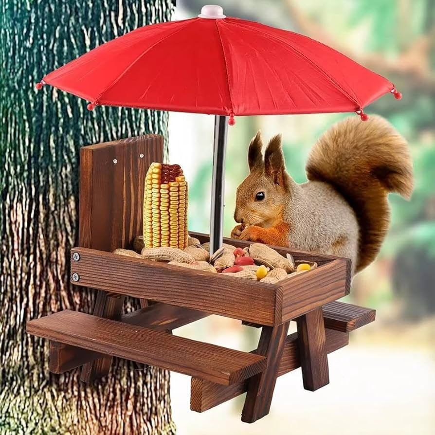 NEW PICNIC TABLE SHAPED SQUIRREL FEEDER W/UMBRELLA