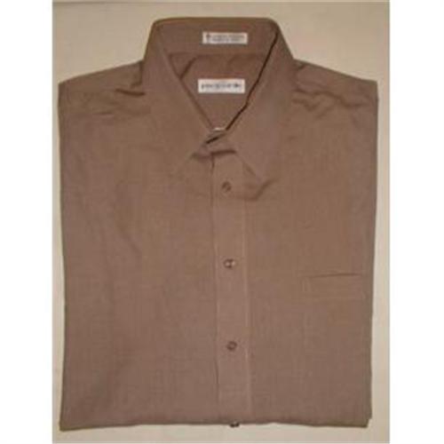 This is a PIERRE CARDIN size 17-17 1/2 - 34/35 medium brown long sleeve dress shirt. It is 65% polyester and 35% cotton. It is 27 1/2" across the chest under the armpits and is 35" from the collar to the hem. It is in excellent new condition.