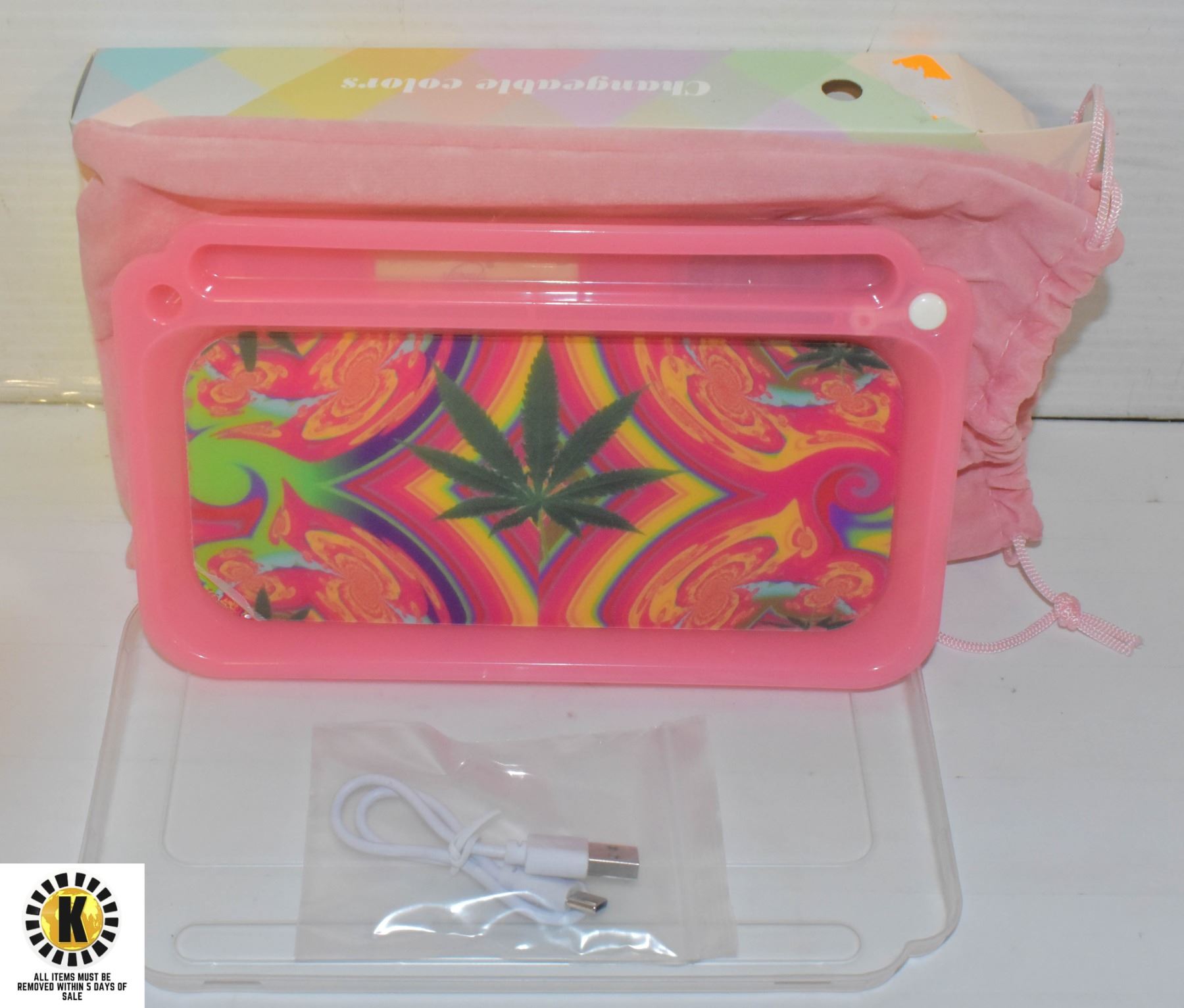 NEW PINK CANNABIS LEAF THEMED LED ROLLING TRAY