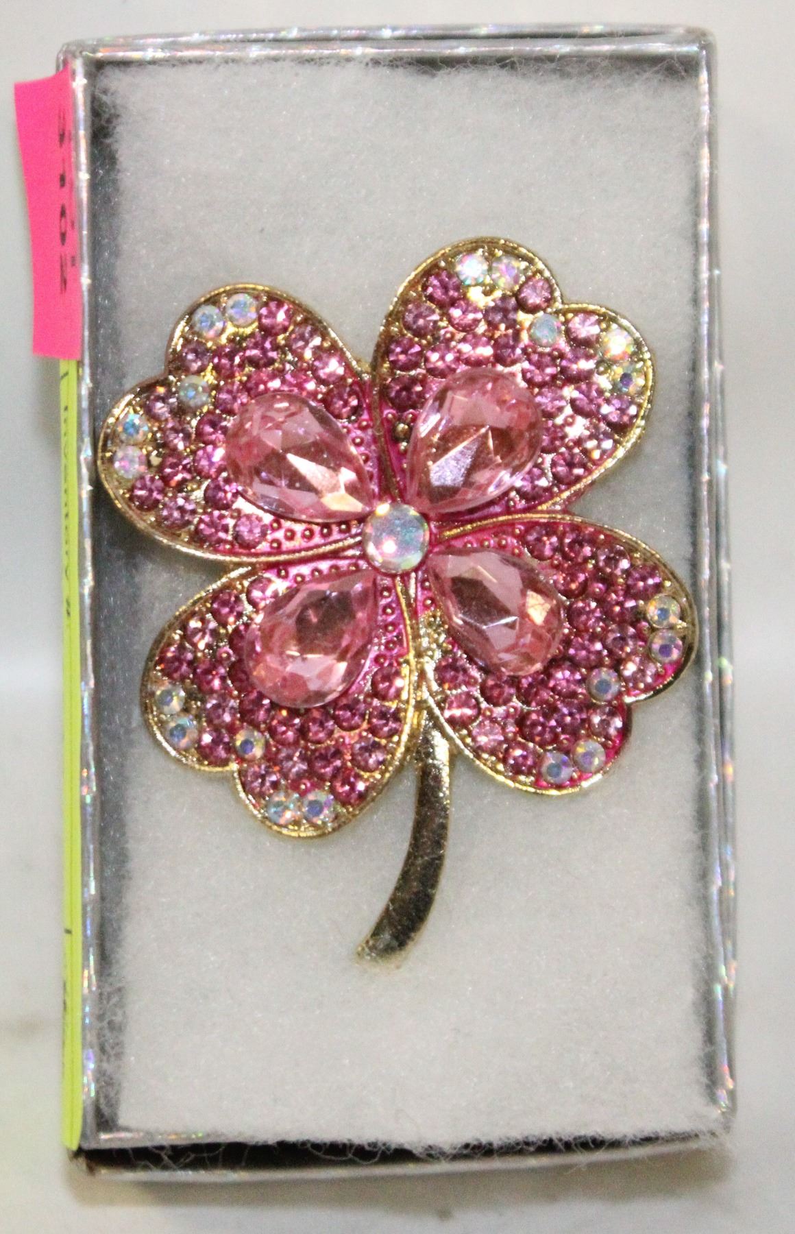 NEW PINK FOUR LEAF CLOVER RHINESTONE