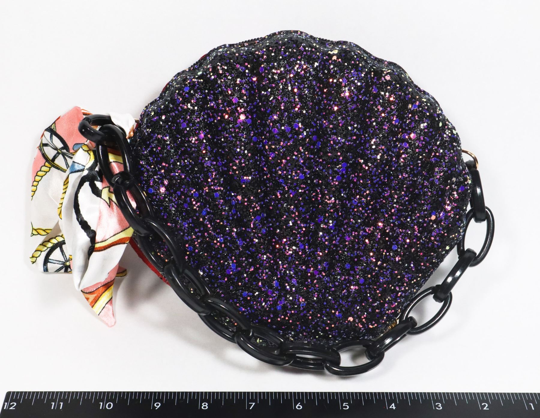 NEW PINK GLITTER, BLACK SHELL SHAPED SATCHEL BAG