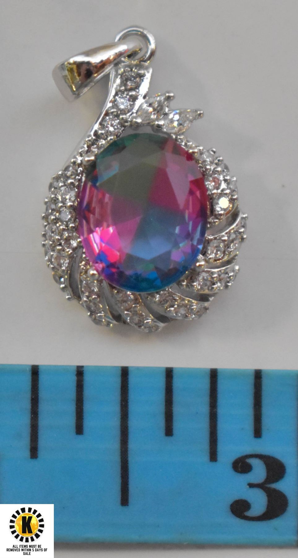 COLOURED WITH WHITE CZ HALO PENDANT - 35829