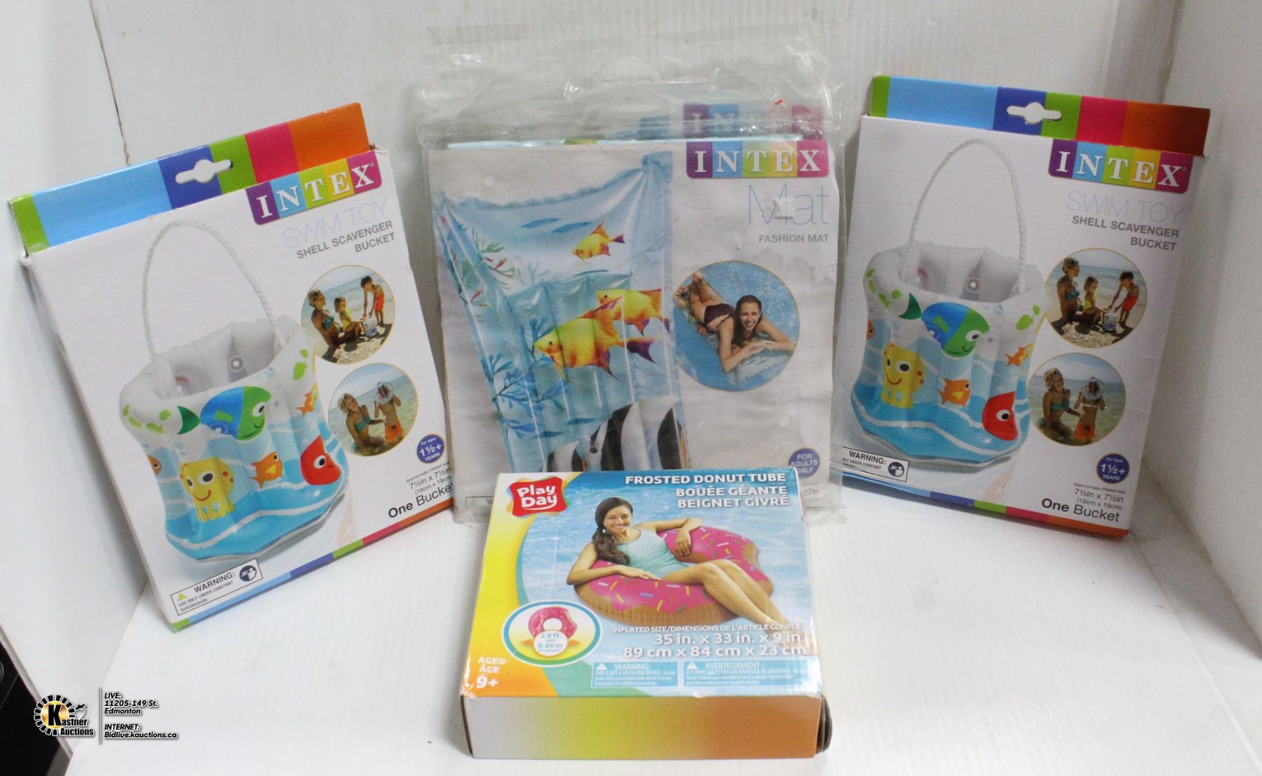 FLOATERS W/(2) SWIM TOY INFLATABLE SHELL BUCKETS & PLAY DAY FROSTED DONUT TUBE