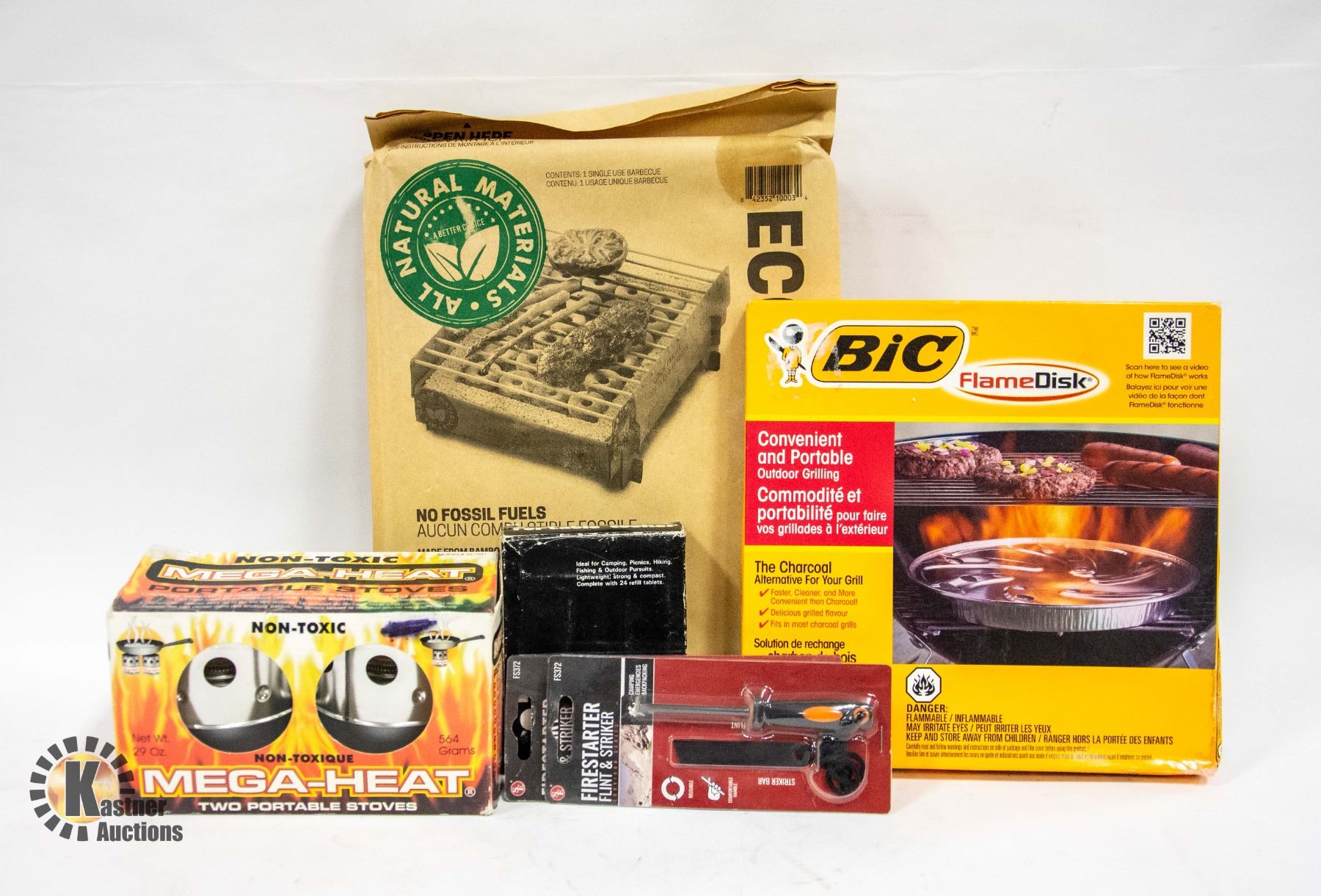 ITEMS BIC FLAME DISK, ECO BQ, 2-PACK MEGA HEAT PORTABLE STOVES & (2) NEW FIRE STARTER FLINT STRIKERS **ALL ITEMS MUST BE REMOVED BY 5PM SATURDAY, MAY 13TH 2023. ALL REMAINING ITEMS WILL BE SUBJECT TO A $6.00 PER DAY STORAGE CHARGE. ANY ITEMS REMAINING AFTER MONDAY, MAY 29TH, 2023 WILL BE CONSIDERED FORFEITED. NO REFUNDS WILL BE ISSUED FOR FORFEITED ITEMS. TO SCHEDULE A PICK UP APPOINTMENT CLICK HERE