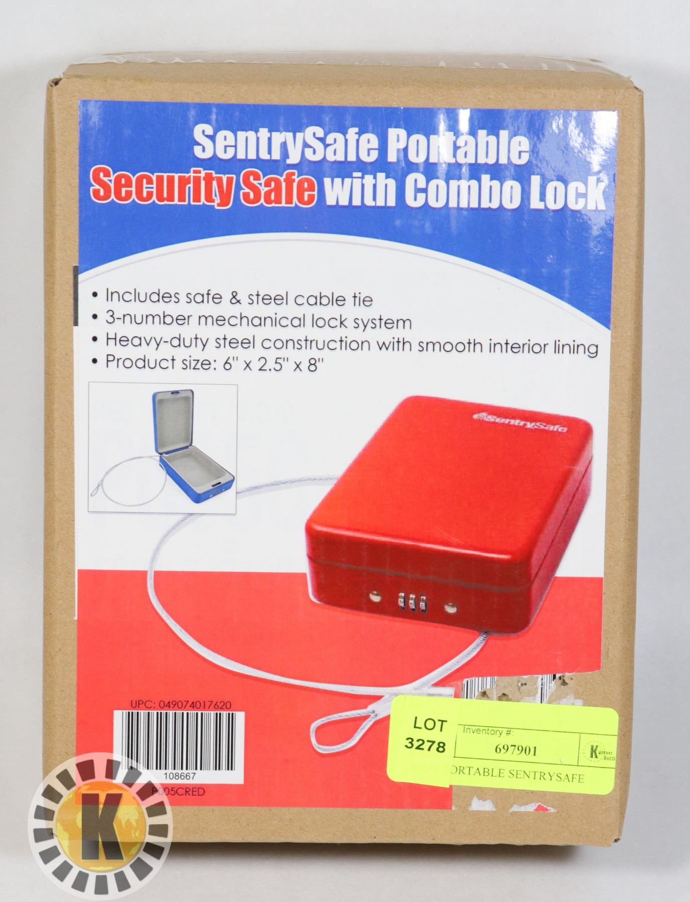 INCLUDES SAFE AND STEEK CABLE TIE, 3 NUMBER MECHANICAL LOCK SYSTEM, HEAVY-DUTY STEEL CONSTRUCTION. SIZE 6"X2.5"X8"