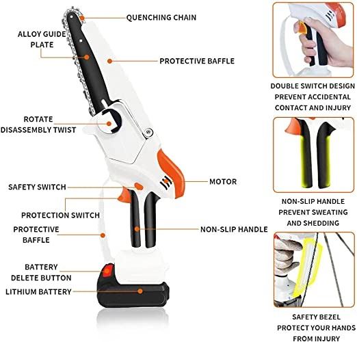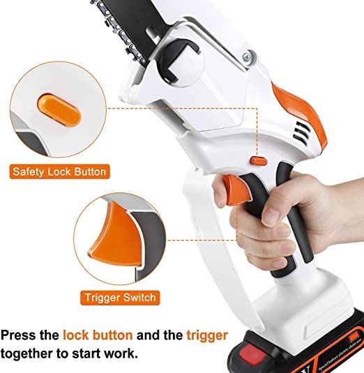 6 INCH MINI CHAINSAW, MODEL C200, WHITE, COMES WITH CARRYING/STORAGE BAG, GLOVES, EXTRA CHAIN, HAND GUARD, 2 RECHARGEABLE 21V LITHIUM ION BATTERIES, CHARGER AND ADAPTER, SAFETY GLASSES, TESTED, SEALED PARTS AND MANUAL CONFIRMED, AMZ SES **ALL ITEMS MUST BE REMOVED BY 5PM FRIDAY, AUGUST 12TH, 2022. ALL REMAINING ITEMS WILL BE SUBJECT TO A $6.00 PER DAY STORAGE CHARGE. ANY ITEMS REMAINING AFTER FRIDAY, AUGUST 26, 2022 WILL BE CONSIDERED FORFEITED. NO REFUNDS WILL BE ISSUED FOR FORFEITED ITEMS.** TO SCHEDULE A PICK UP APPOINTMEN. CLICK HERE