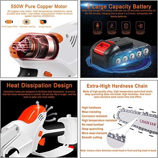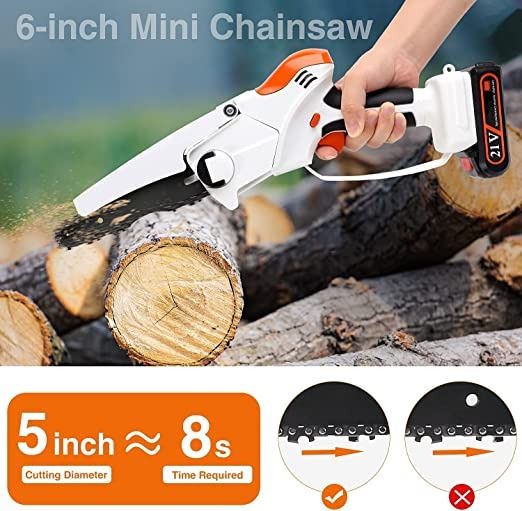 6 INCH MINI CHAINSAW, MODEL C200, WHITE, COMES WITH CARRYING/STORAGE BAG, GLOVES, EXTRA CHAIN, HAND GUARD, 2 RECHARGEABLE 21V LITHIUM ION BATTERIES, CHARGER AND ADAPTER, SAFETY GLASSES, TESTED, SEALED PARTS AND MANUAL CONFIRMED, AMZ SES **ALL ITEMS MUST BE REMOVED BY 5PM FRIDAY, AUGUST 12TH, 2022. ALL REMAINING ITEMS WILL BE SUBJECT TO A $6.00 PER DAY STORAGE CHARGE. ANY ITEMS REMAINING AFTER FRIDAY, AUGUST 26, 2022 WILL BE CONSIDERED FORFEITED. NO REFUNDS WILL BE ISSUED FOR FORFEITED ITEMS.** TO SCHEDULE A PICK UP APPOINTMEN. CLICK HERE
