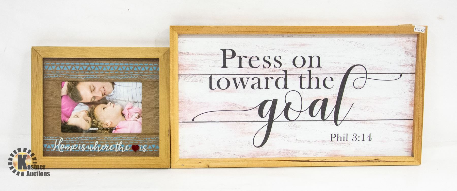 SIGN - 10" X 18" & HOME IS WHERE THE HEART IS FRAME - 9" X 8" **ALL ITEMS MUST BE REMOVED BY 5PM SATURDAY, SEPTEMBER 21ST 2024. ALL REMAINING ITEMS WILL BE SUBJECT TO A $6.00 PER DAY STORAGE CHARGE. ANY ITEMS REMAINING AFTER MONDAY, OCTOBER 7TH 2024 WILL BE CONSIDERED FORFEITED. NO REFUNDS WILL BE ISSUED FOR FORFEITED ITEMS. TO SCHEDULE A PICK UP APPOINTMENT CLICK HERE