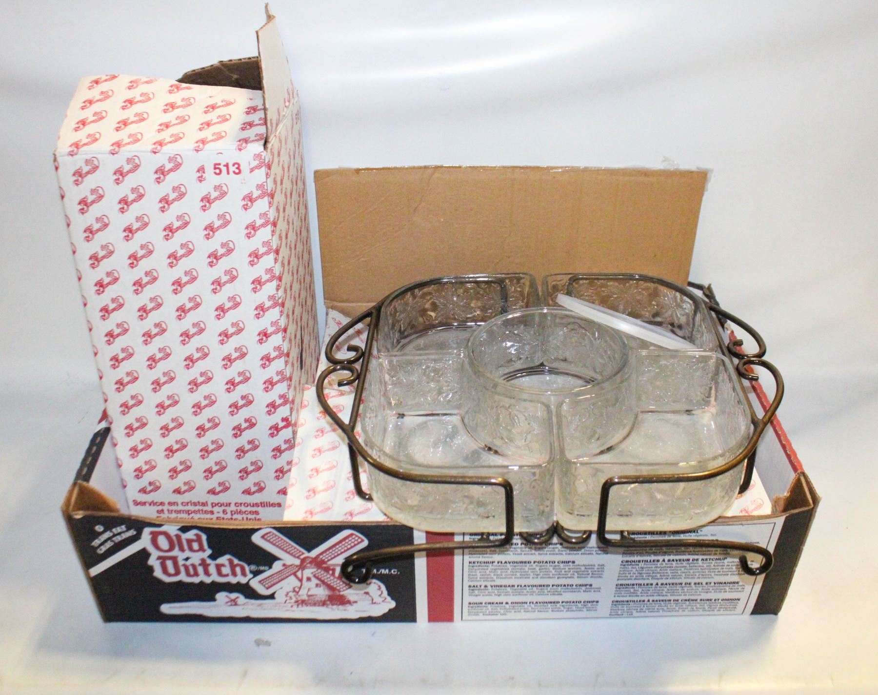 CHIP/FRUIT/VEG AND DIP SET (HAS POINTSETTAS ON IT)-WITH METAL CADDY #334