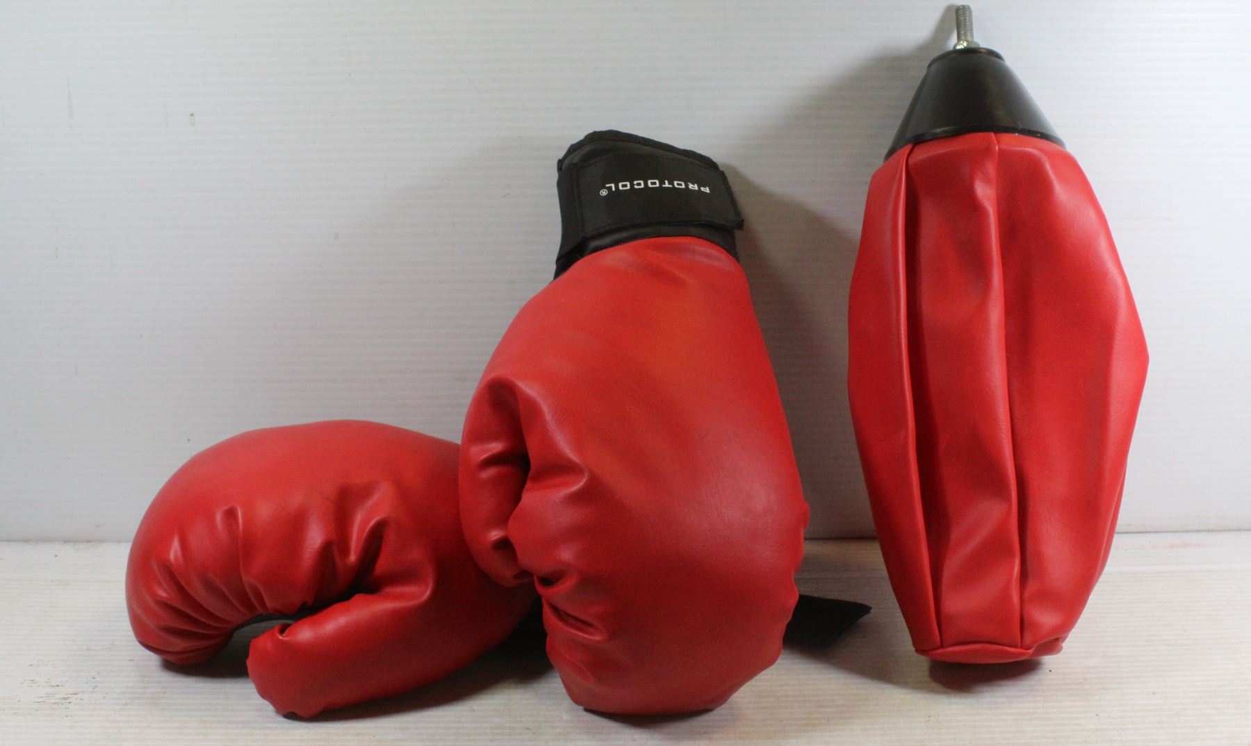 NEW PROTOCOL BOXING GLOVES & SPEED BAG. MED/LGE