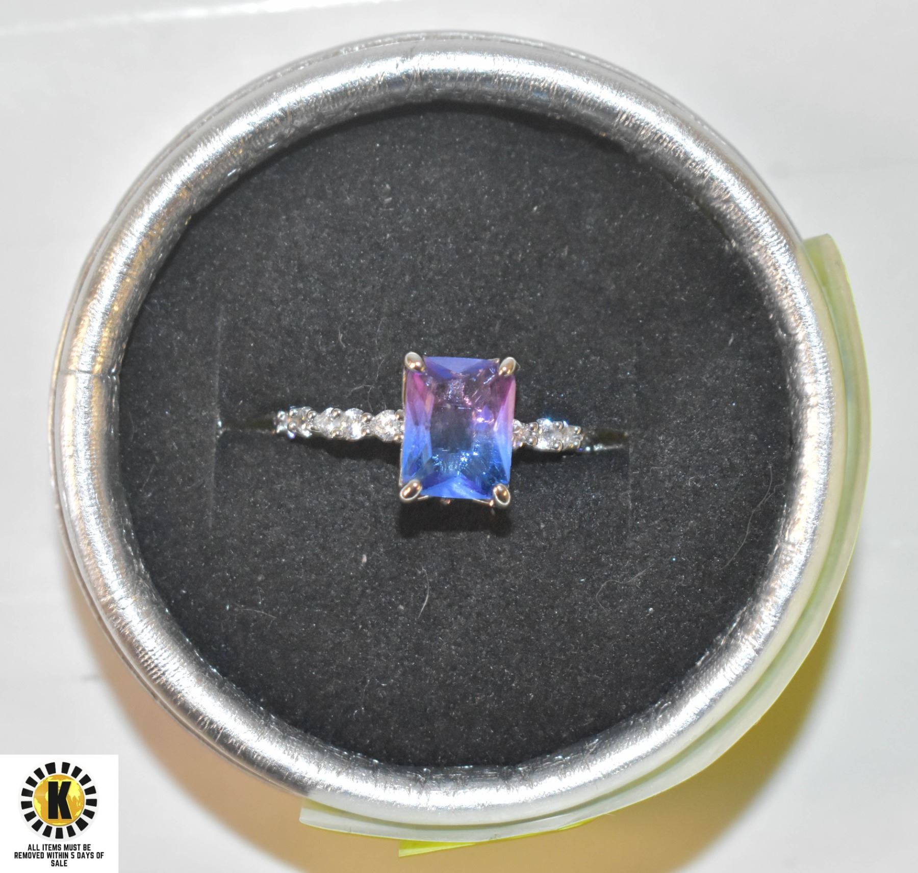 MOISSANITE SIDE ACCENT STONES - ADJUSTABLE SIZE BAND SLIDES IN AND OUT TO MAKE BIGGER OR SMALLER.