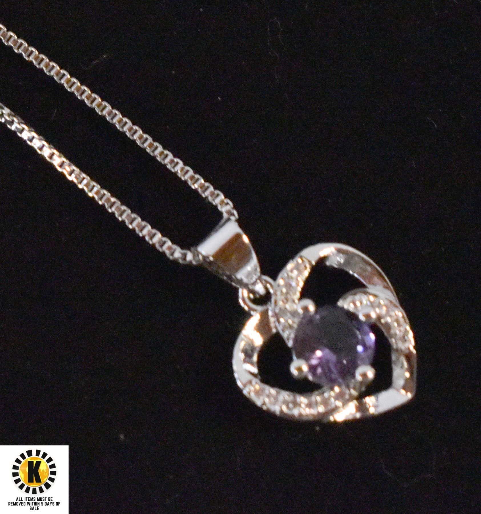 NEW PURPLE HEART 925 STERLING SILVER NECKLACE