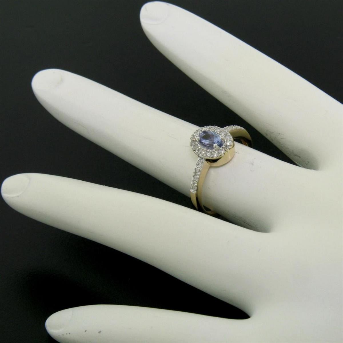 NEW Petite 14K Yellow Gold 0.50 ctw Oval Cut Tanzanite Ring w/ Round Diamond Hal