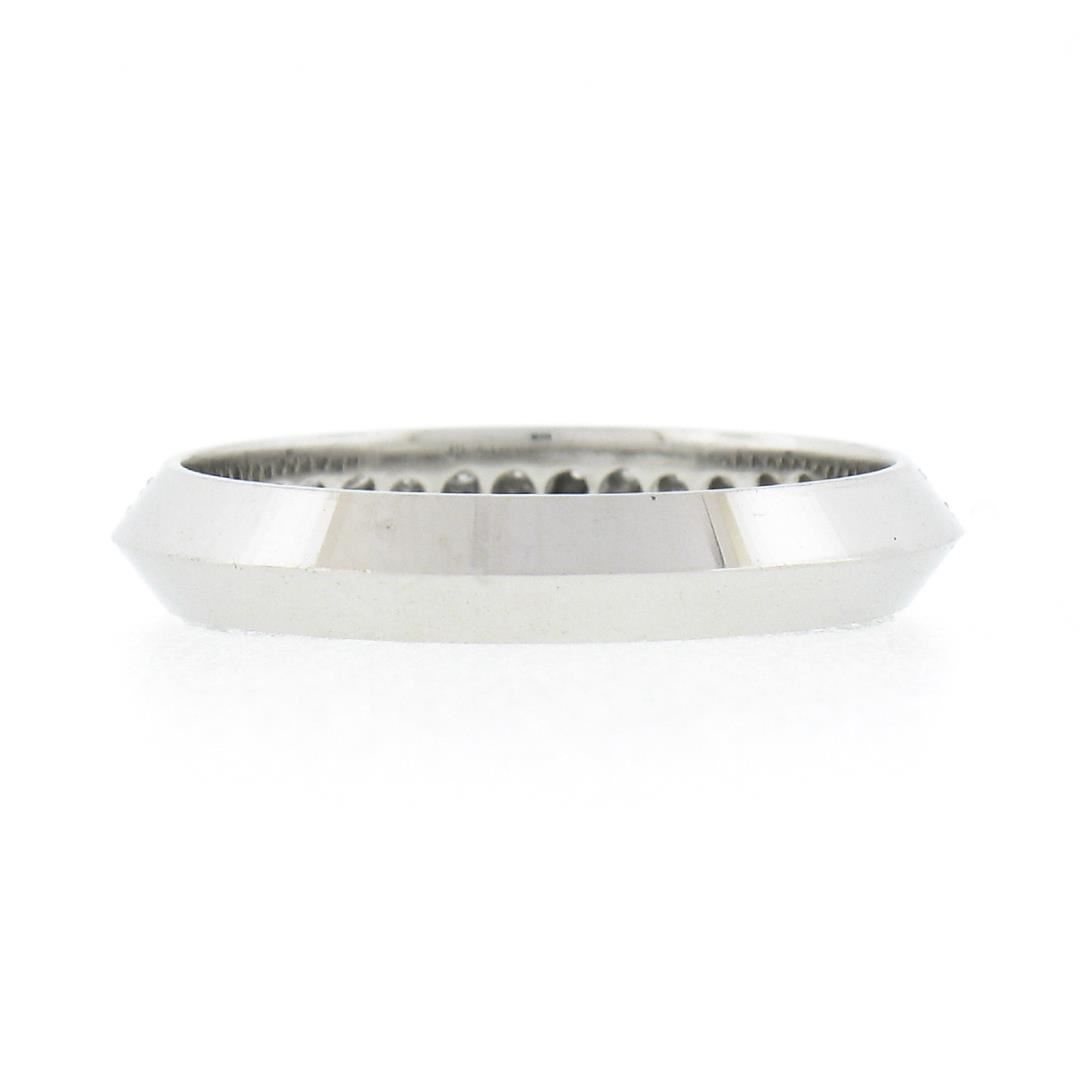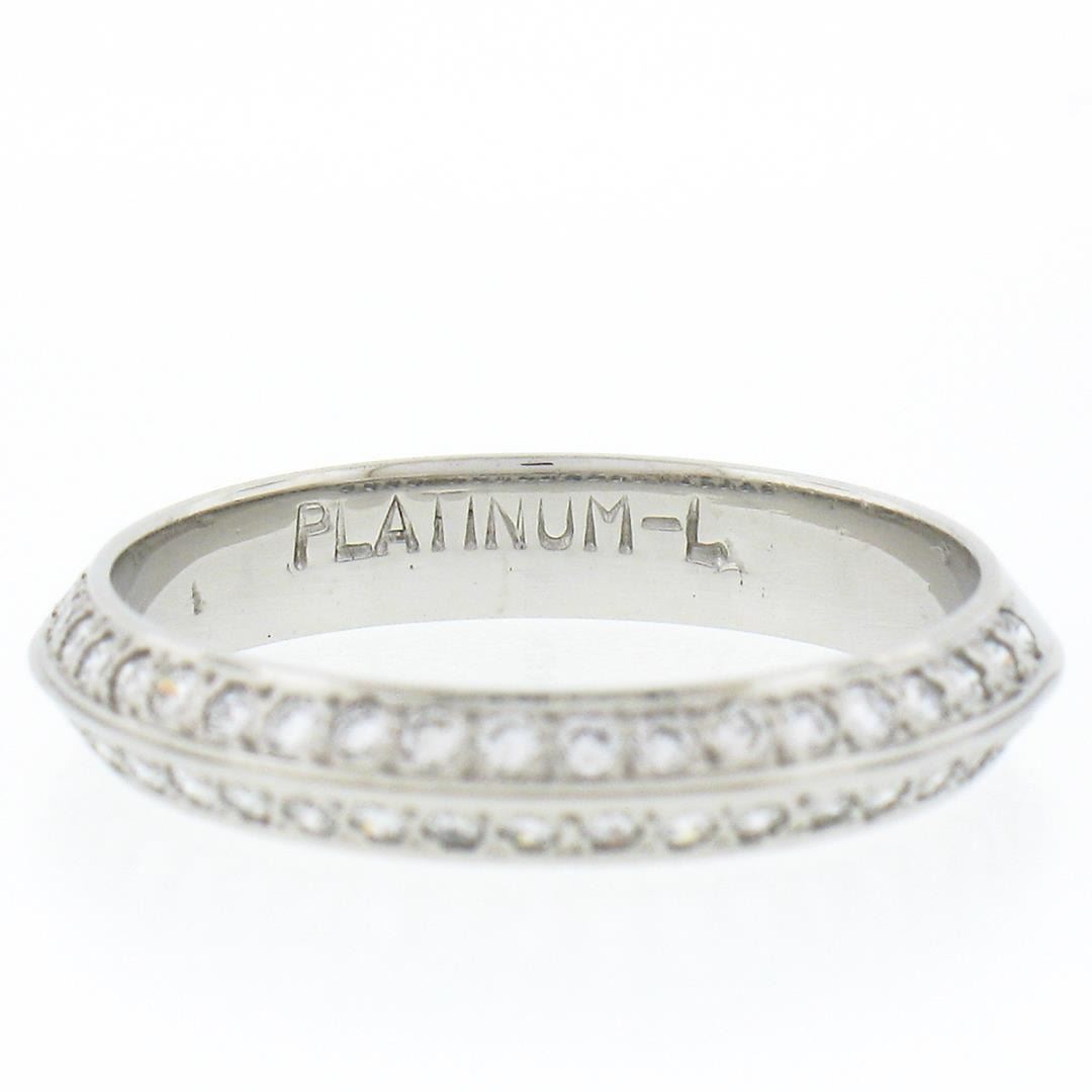 A new solid platinum band ring, with 40 round cut natural diamonds (G/H - VS1/VS2 ; 0.30ctw). The ring is size 6.5, weighs a total of 3.3 grams, and measures 3.4mm wide.