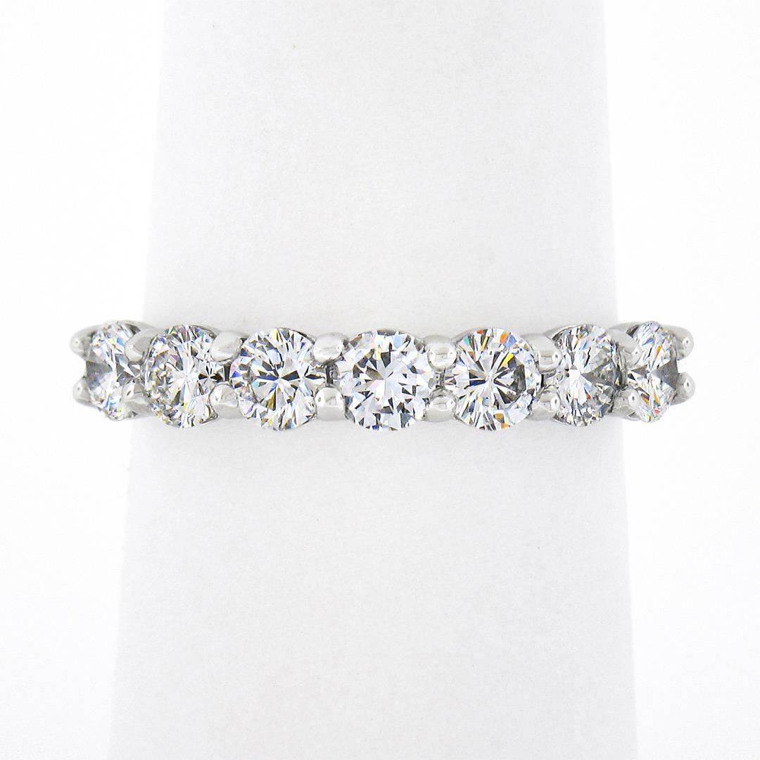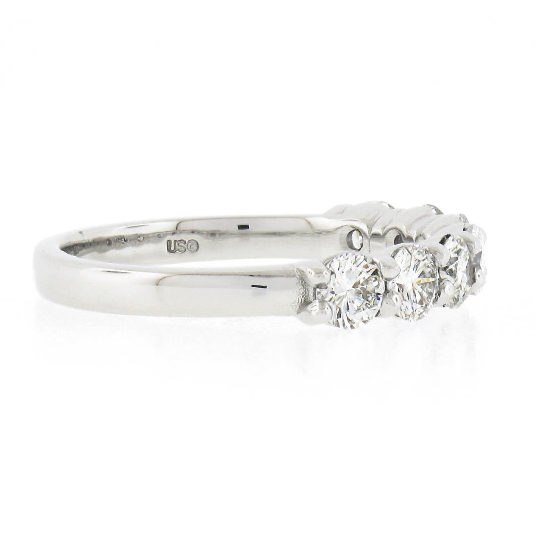 A new solid platinum band ring, with 7 round brilliant cut natural diamonds (F/G - VS1/VS2; 1.12ctw). The ring is size 7.0, weighs a total of 4.61 grams, and measures 3.55mm wide.