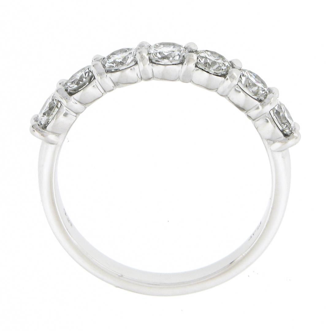 A new solid platinum band ring, with 7 round brilliant cut natural diamonds (F/G - VS1/VS2; 1.12ctw). The ring is size 7.0, weighs a total of 4.61 grams, and measures 3.55mm wide.