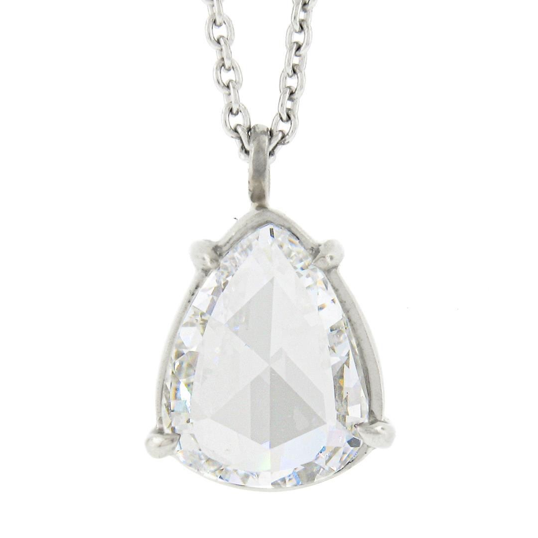 A new solid platinum solitaire pendant necklace, with 1 GIA graded pear rose cut natural diamond (E - VS1 ; 1.38ct). 18 inch cable link chain, 4.62 grams total weight, pendant measures 13.1x9mm. Comes with all original relevant certifications.