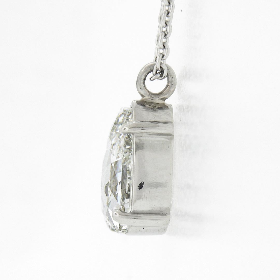 A new solid platinum solitaire pendant necklace, with 1 GIA graded pear rose cut natural diamond (E - VS1 ; 1.38ct). 18 inch cable link chain, 4.62 grams total weight, pendant measures 13.1x9mm. Comes with all original relevant certifications.