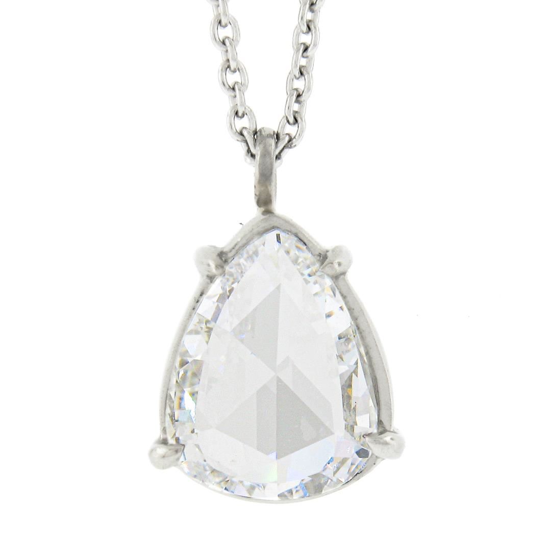 NEW Platinum 1.38 ctw GIA Pear Rose Cut Diamond Solitaire Collet Pendant & Chain