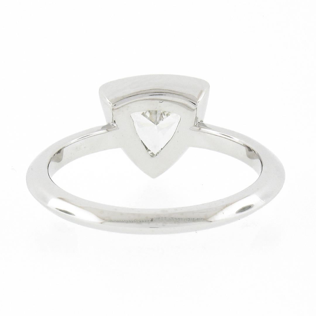 A new solid platinum solitaire ring, with 1 GIA graded trillion cut natural diamond (G - SI2 ; 1.01ct). The ring is size 6.0, weighs a total of 5.0 grams, and measures 8.90mm wide. Comes with all original relevant certifications.