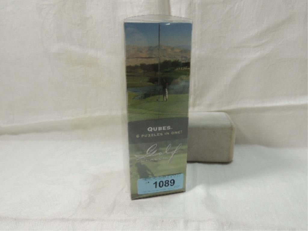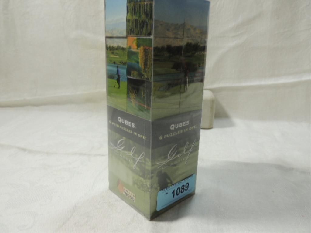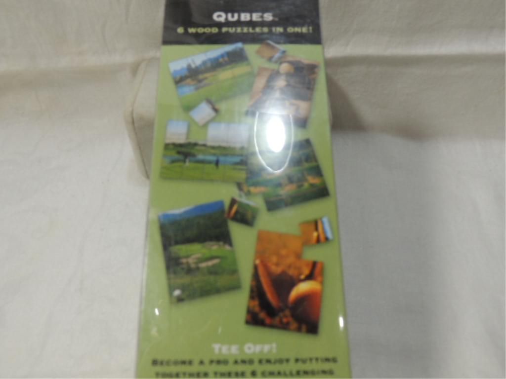 NEW IN BOX. QUBES. SIX WOOD PUZZLES IN ONE. GOLF THEME. AS SHOWN. SEE PHOTO FOR MORE DETAILS.