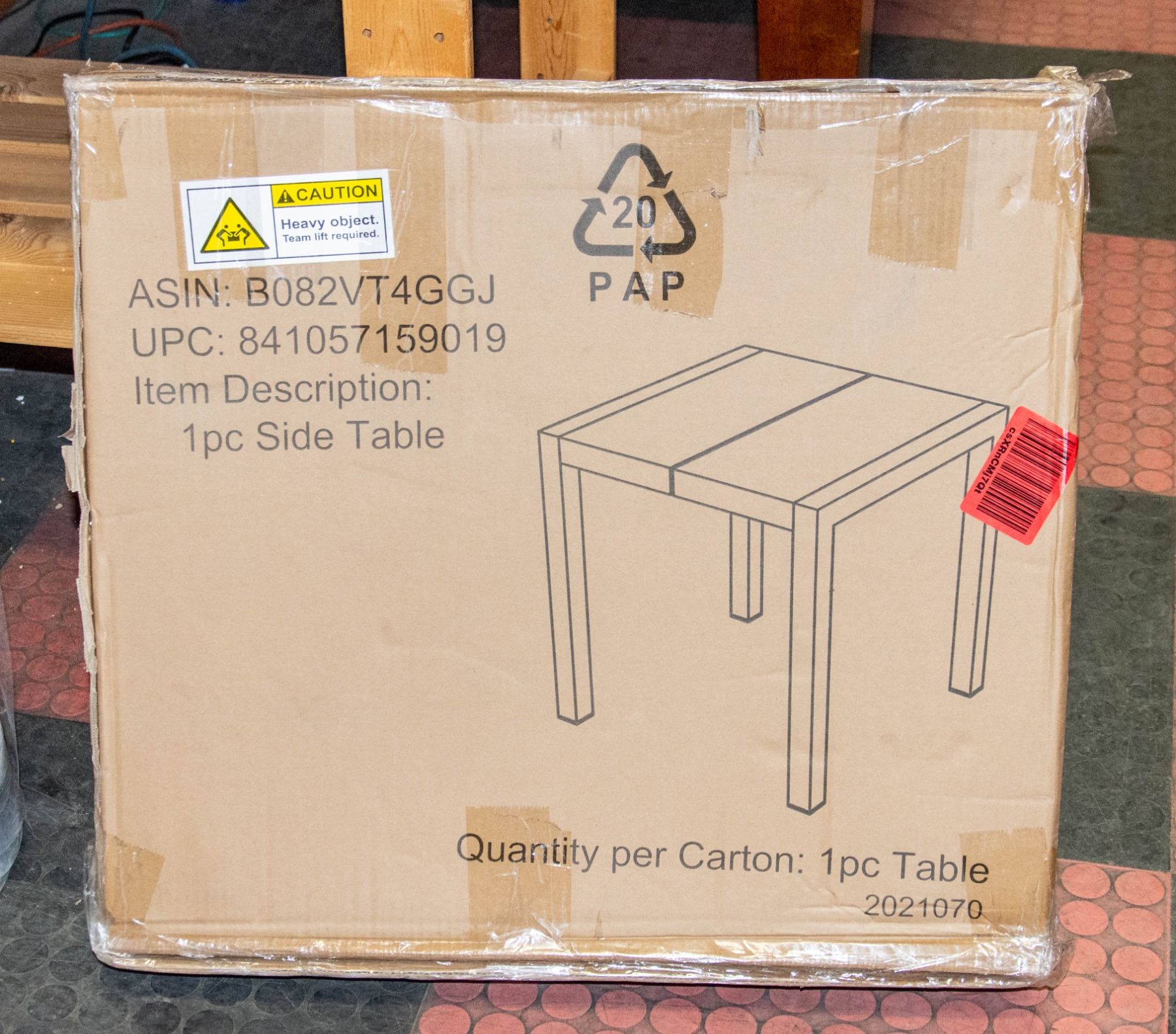 OUTDOOR SIDE TABLE WITH PANEL TOP, PARTS/MANUAL CONFIRMED, STEEL FRAME, AMZ SES **ALL ITEMS MUST BE REMOVED BY 5PM SATURDAY, MARCH 25TH 2023. ALL REMAINING ITEMS WILL BE SUBJECT TO A $6.00 PER DAY STORAGE CHARGE. ANY ITEMS REMAINING AFTER MONDAY, APRIL 10TH, 2023 WILL BE CONSIDERED FORFEITED. NO REFUNDS WILL BE ISSUED FOR FORFEITED ITEMS. TO SCHEDULE A PICK UP APPOINTMENT CLICK HERE