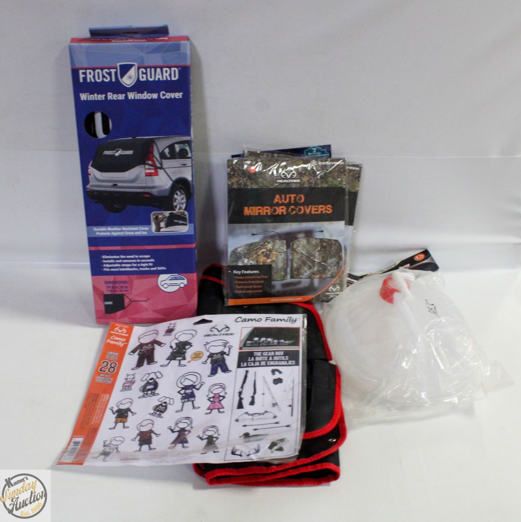 2PKS REALTREE SIDE MIRROR COVERS + REALTREE WINDOW DECALS + BEHIND SEAT HEAD REST ATTACHMENT ORGANIZER POCKETS + COLLAPSIBLE WATER JUG **ALL ITEMS MUST BE REMOVED BY 5PM SATURDAY, NOVEMBER 22ND 2025. ALL REMAINING ITEMS WILL BE SUBJECT TO A $6.00 PER DAY STORAGE CHARGE. ANY ITEMS REMAINING AFTER MONDAY, DECEMBER 8TH 2025 WILL BE CONSIDERED FORFEITED. NO REFUNDS WILL BE ISSUED FOR FORFEITED ITEMS. TO SCHEDULE A PICK UP APPOINTMENT CLICK HERE