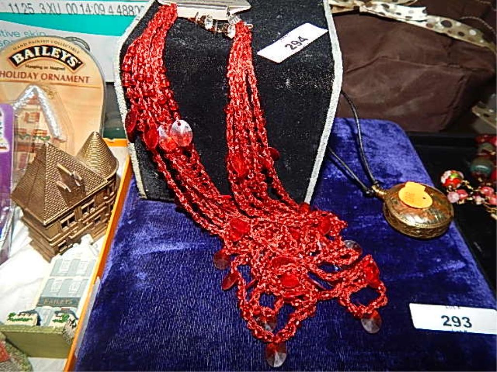 NEW RED NECKLACE AND RHINESTONE EARINGS