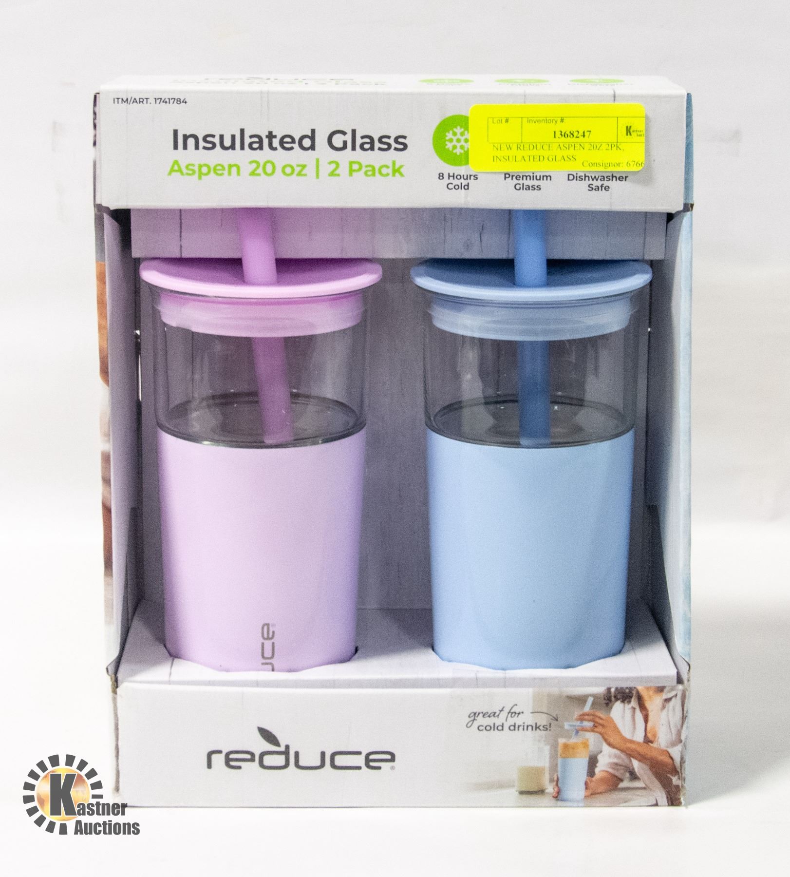NEW REDUCE ASPEN 20Z 2PK, INSULATED GLASS