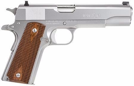 Mfr Items:Remington Firearms Category:PISTOLS Frame Finish:Stainless Type:Pistol Action:Single Caliber:45 Automatic Colt Pistol (ACP) Barrel Length:5.0" Capacity:7+1 Safety:Manual Thumb/Grip Grips:Walnut Sights:3-Dot Dovetail Weight:38.5 oz Frame Material:Carbon Steel Barrel Type:Match Grade Stainless Steel