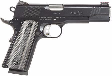 Mfr Items:Remington Firearms Category:PISTOLS Frame Finish:Black Type:Pistol Action:Single Caliber:45 Automatic Colt Pistol (ACP) Barrel Length:5.0" Capacity:8+1 Safety:Manual Thumb/Grip Grips:Black Laminate Sights:Fiber Optic Front, Adjustable Rear Weight:39.5 oz Frame Material:Carbon Steel Barrel Type:Match Grade Stainless Steel Slide Description:Black