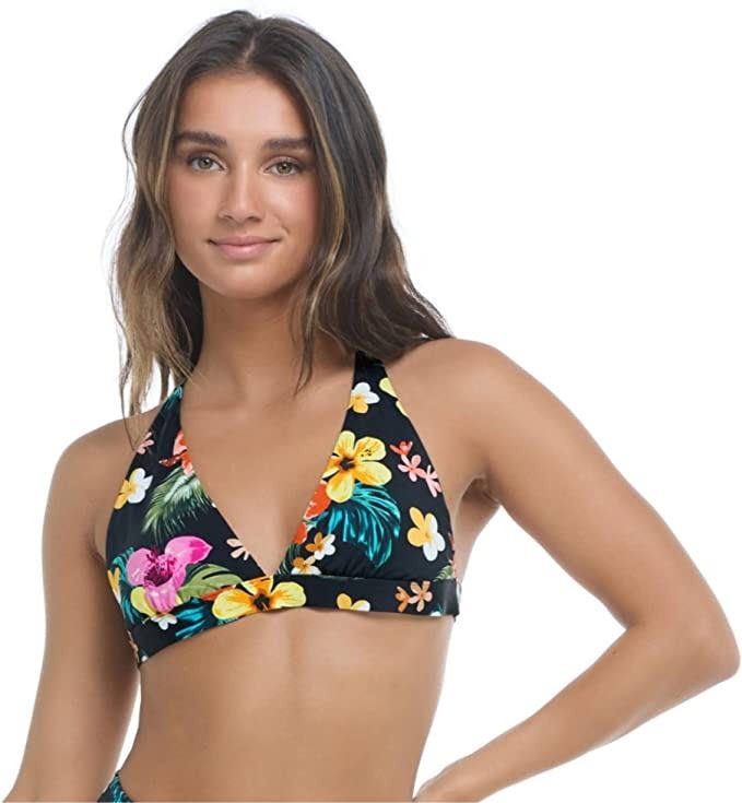 STANDARD FREYA FIXED TRIANGLE HALTER BIKINI TOP SWIMSUIT WITH 2-WAY BACK, TROPICAL ISLAND, AMZ SES