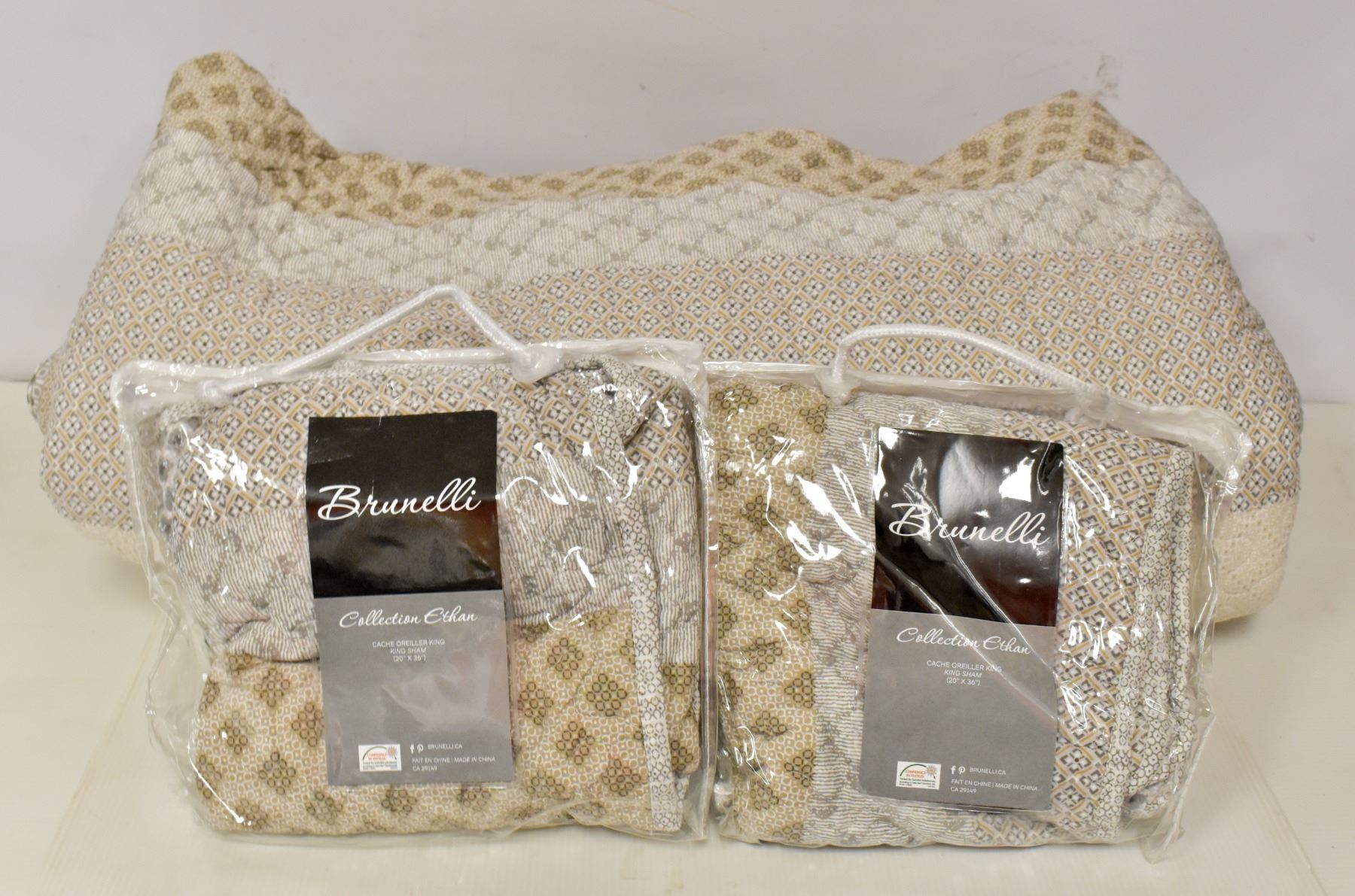 INCLUDES 1 COTTON KING QUILT (104X100") & 2 SHAMS (20X36"). 100% COTTON. MSRP $325. HBC SES