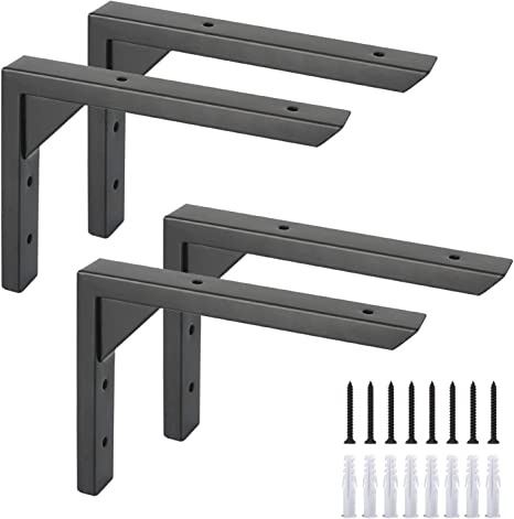 WALL MOUNT TRIANGLE SHELF BRACKETS BLACK IRON SHELF BRACKETS WITH SCREWS STURDY SHELF SUPPORTS (BLACK) (10INCH, BLACK), AMZ SES