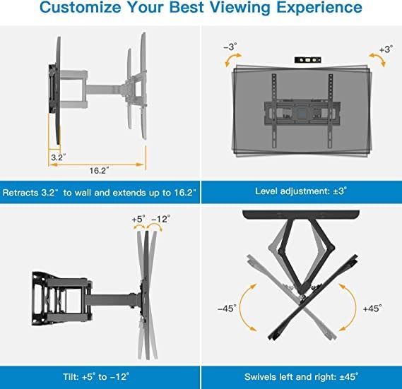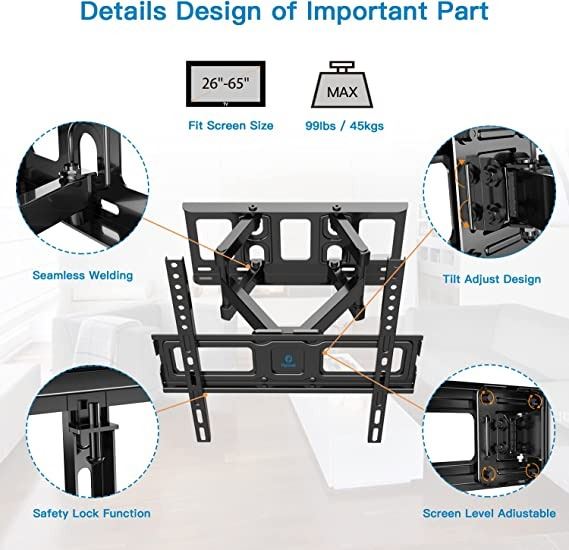 MODEL: PSMFK4, BLACK, FITS MOST 26 - 65" FLATSCREENS, MAX VESA 400X400, 99LB MAX, DUAL SWIVEL ARTICULATING ARMS, PARTS/MANUAL CONFIRMED, AMZ SES