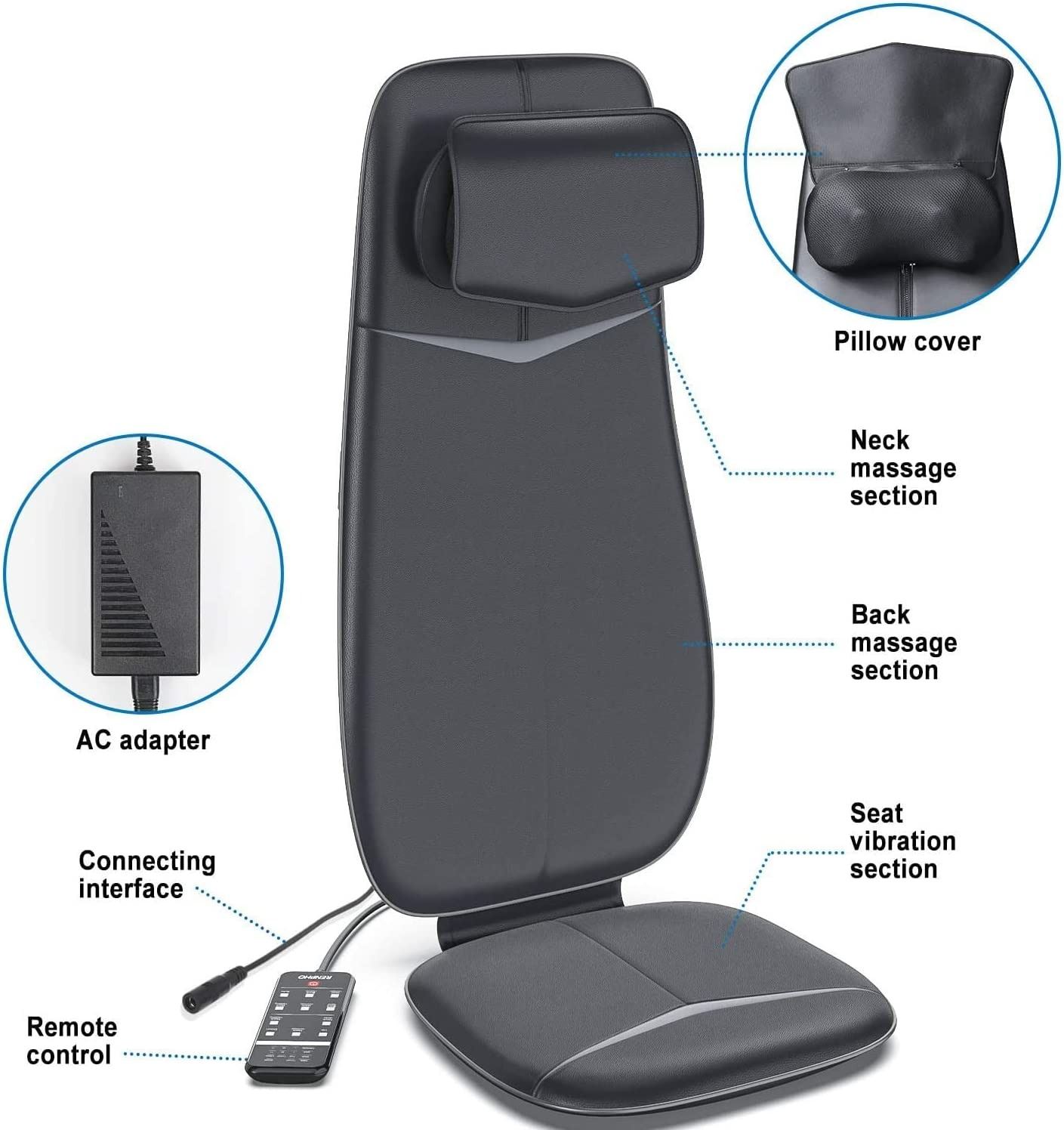 MODEL: RF-BM076, FULL BACK AND NECK MASSAGE WITH SEAT CUSHION VIBRATION AND HEAT FUNCTION, S-SHAPE, HEIGHT ADJUSTABLE SETTINGS FOR ALL MASSAGE AREAS, NECK MASSAGER HAS A SLIDER TO TARGET SPECIFIC AREA, REMOTE CONTROL WITH TIMER, ALL PARTS/MANUAL CONFIRMED, TESTED, AMZ SES, MSRP. $249.99 **ALL ITEMS MUST BE REMOVED BY 5PM MONDAY, NOVEMBER 14TH, 2022. ALL REMAINING ITEMS WILL BE SUBJECT TO A $6.00 PER DAY STORAGE CHARGE. ANY ITEMS REMAINING AFTER MONDAY, DECEMBER 5, 2022 WILL BE CONSIDERED FORFEITED. NO REFUNDS WILL BE ISSUED FOR FORFEITED ITEMS. TO SCHEDULE A PICK UP APPOINTMENT CLICK HERE
