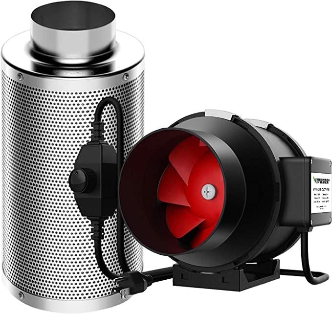 390CFM, 6" INLINE DUCT FAN WITH 6 X 18" VIRGIN CHARCOAL FILTER, PARTS AND MANUAL CONFIRMED, AMZ SES