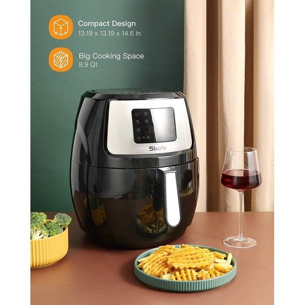 LCD DIGITAL TOUCH SCREEN, INCLUDES TONGS AND RECIPE BOOK, WATER BASED NON STICK COATING, GRILL SHELF AND FRYING BASKET, TESTING, ALL PARTS CONFIRMED, INSTRUCTION MANUAL AND RECIPE BOOK, AMZ SES