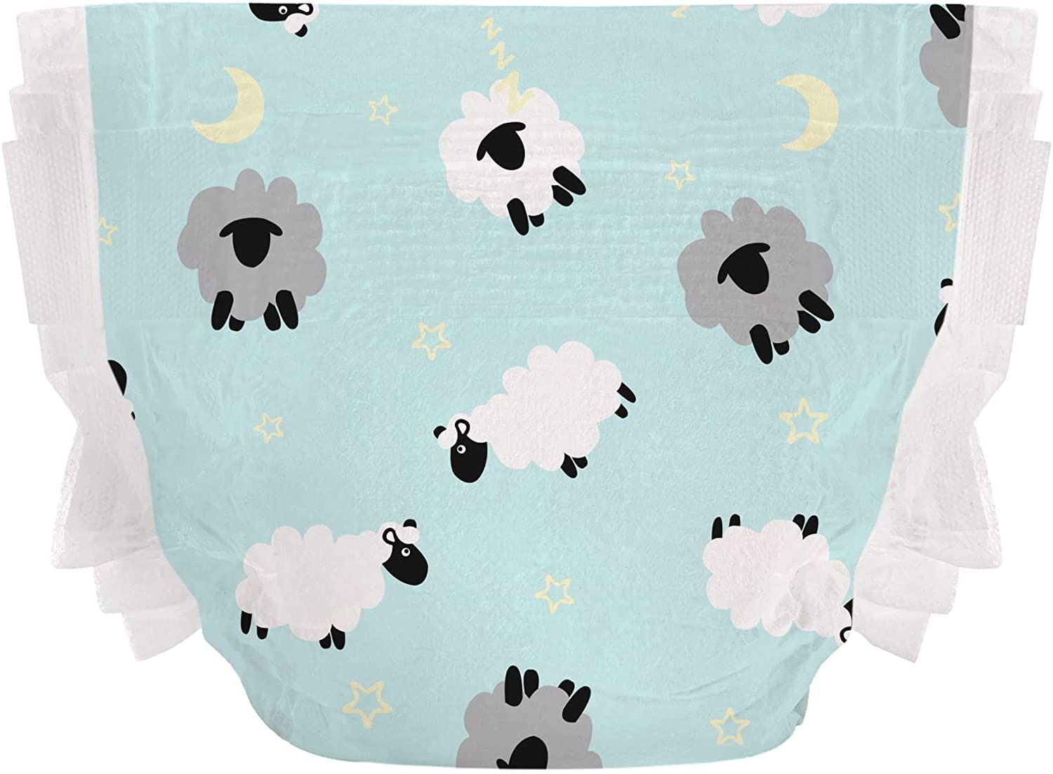 OVERNIGHTS DIAPERS, SHEEP PATTERN, SIZE 6, SEE CHART, MADE WITHOUT LATEX, FRAGRANCE, PARABENS OR CHLORINE PROCESSING, ALL NATURAL, AMZ SES