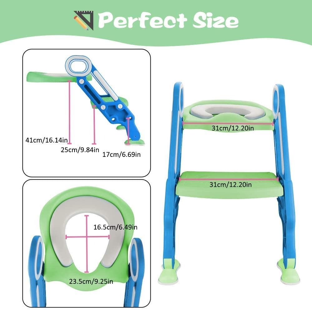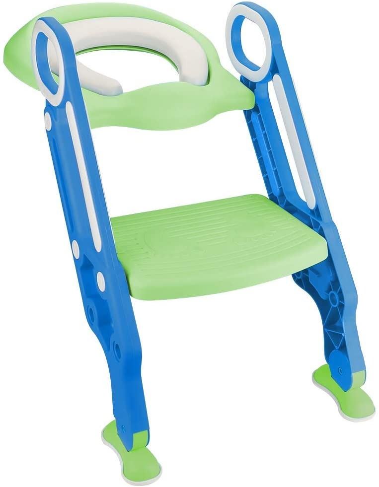 LADDER AND CUSHIONED SEAT, UNIVERSAL - FITS ALMOST ALL STANDARD TOILETS, HAS SAFETY SIDE HANDLES AND FOLDS AWAY FOR EASY STORAGE, ALL PARTS CONFIRMED, INSTRUCTION MANUAL INCLUDED, AMZ SES