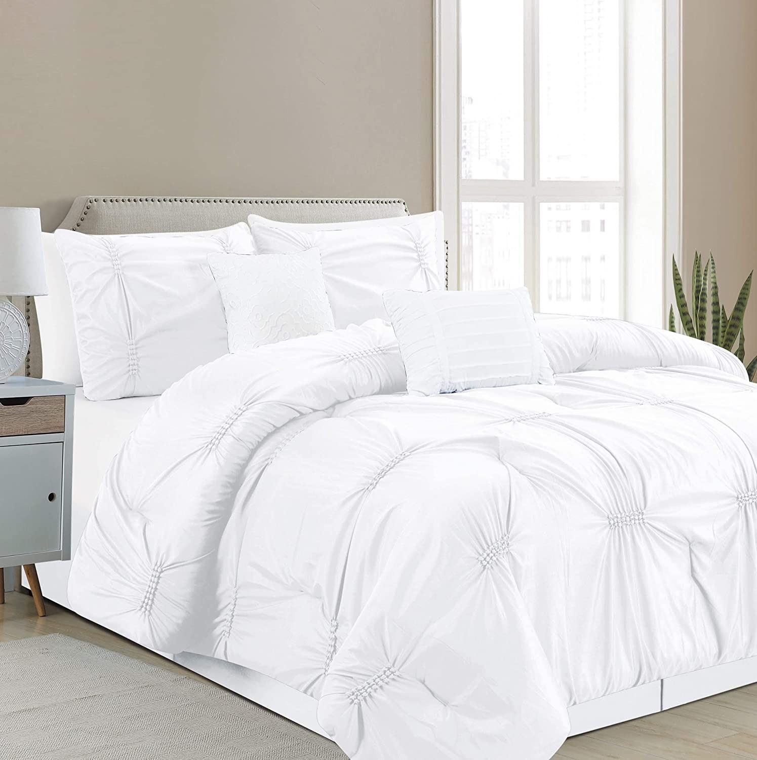 BEDROOM LINEN SET, COMFORTER 88" X 88", 2 SHAMS 20" X 26", 1 DECORATIVE PILLOW 16" X 16", WHITE, ADRIEN MODEL