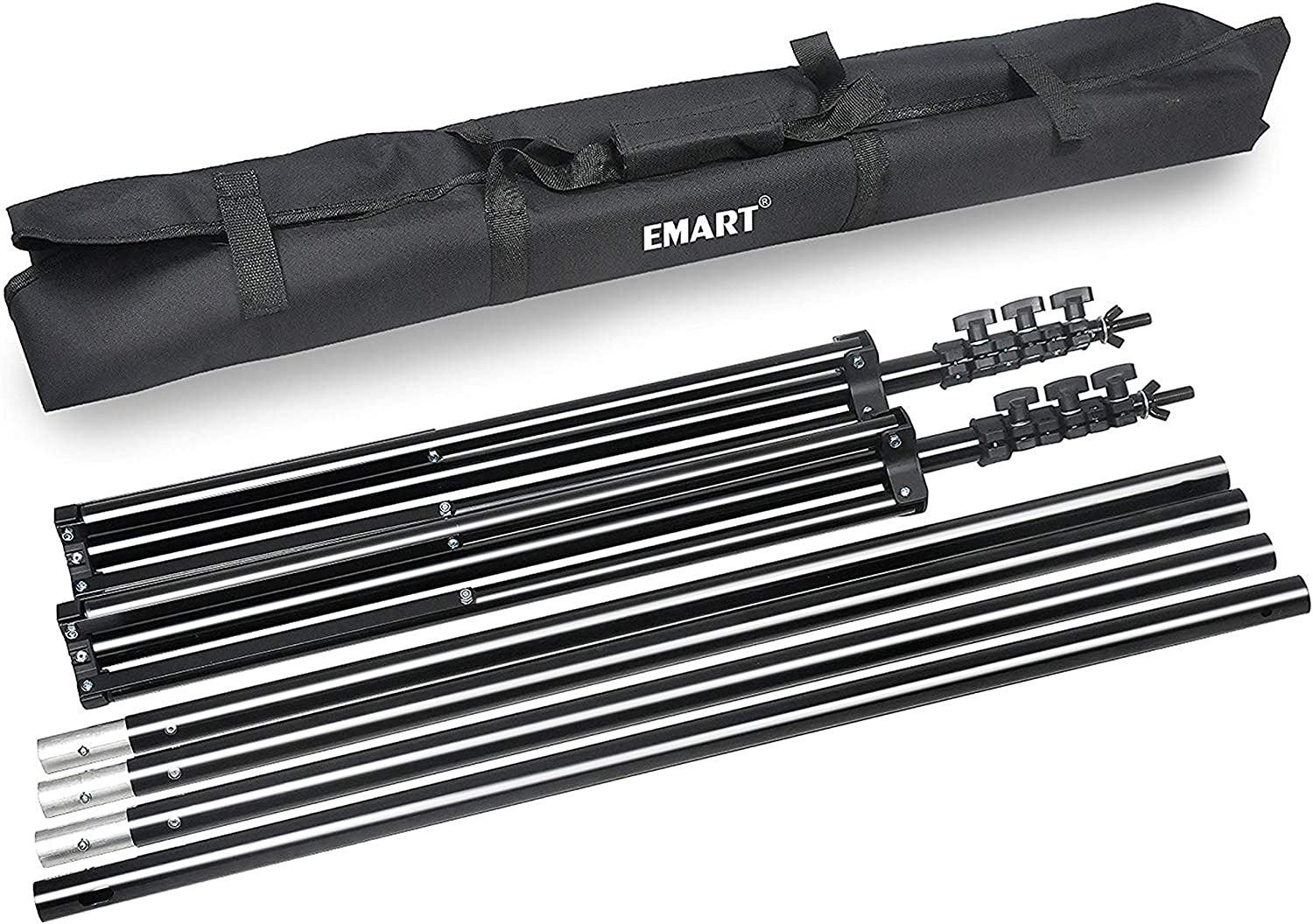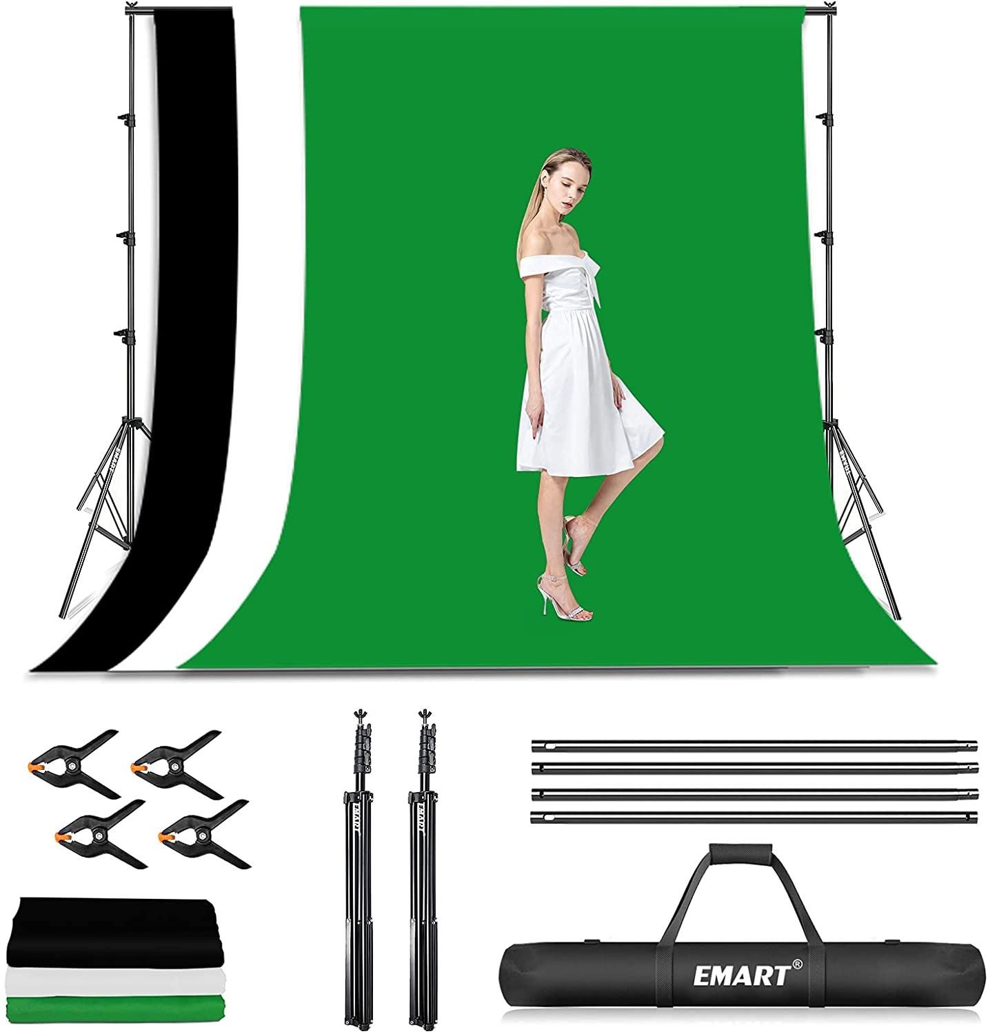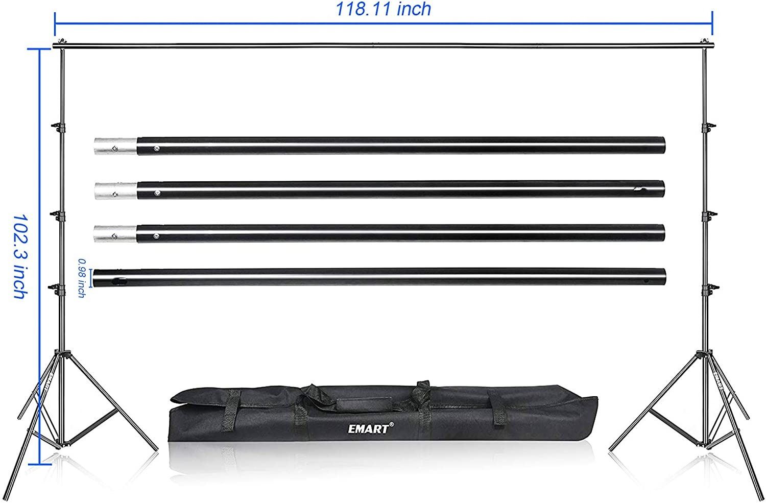 BACKDROP STAND, 8.5" X 10', PHOTO SUPPORT SYSTEM, TRI-COLOR COTTON DROPS (BLACK, GREEN, WHITE), ALL PARTS CONFIRMED, COMES WITH CARRYING BAG