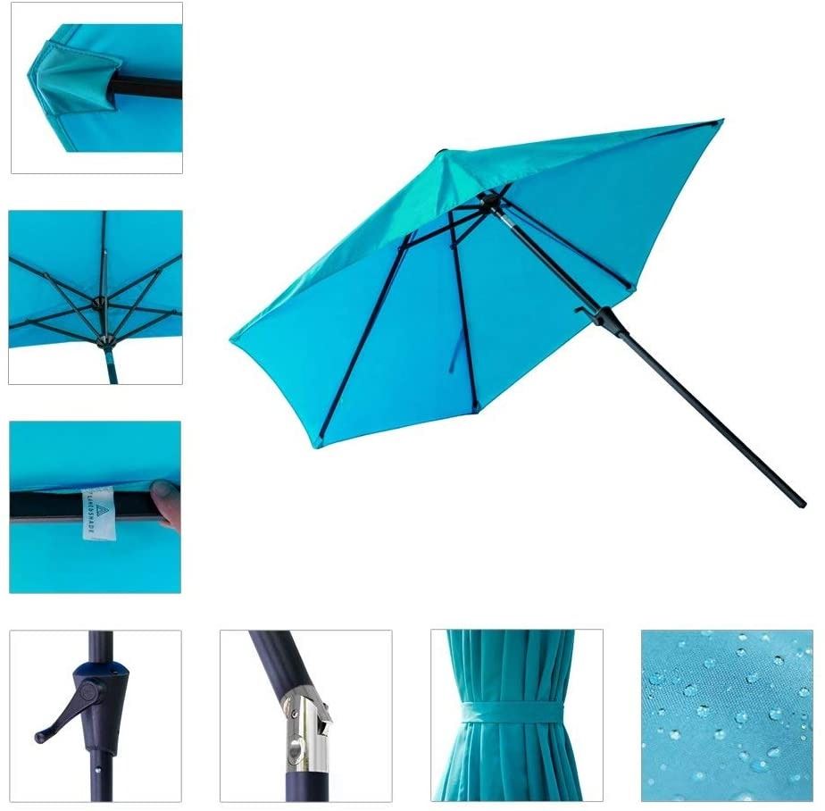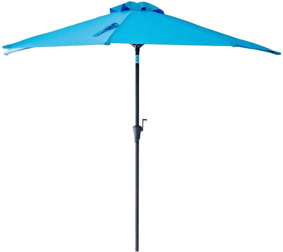 PATIO UMBRELLA, AQUA BLUE, CRANK AND TILT, ALL PARTS CONFIRMED, INSTRUCTION MANUAL INCLUDED, AMZ SES