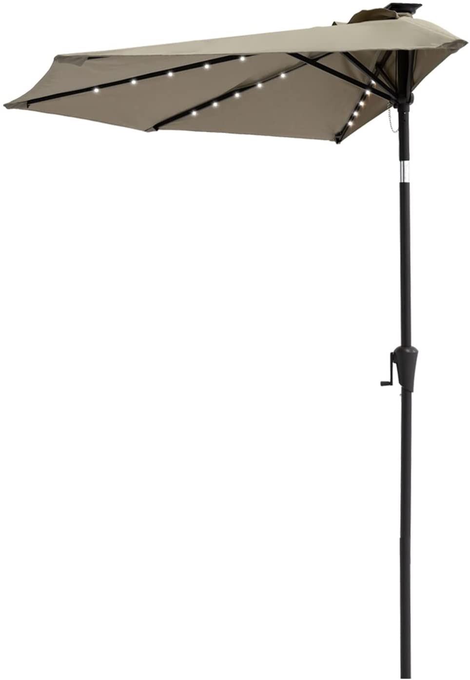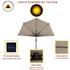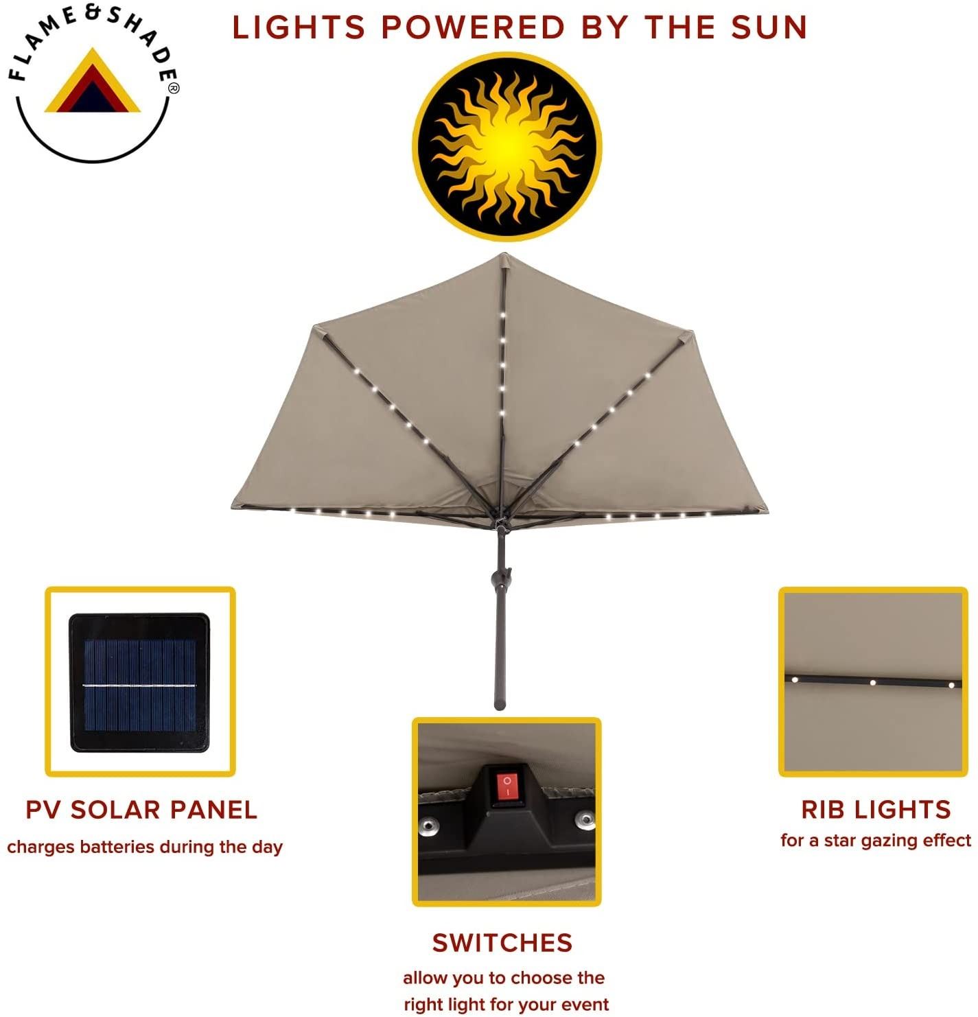 PATIO UMBRELLA WITH LED SOLAR POWERED LIGHTS AND TILT, ALL PARTS CONFIRMED, INSTRUCTION MANUAL INCLUDED, AMZ SES