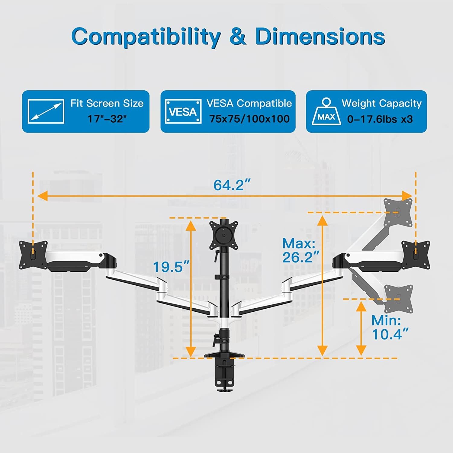 NEW REPACKAGED HUANUO TRIPLE MONITOR STAND, WHITE