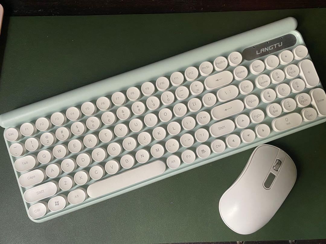 APPROXIMATELY 16" X 5.5", MINT GREEN AND WHITE KEYBOARD, WHITE MOUSE, BATTERIES NOT INCLUDED, USB CONNECT, 2.4G, TESTED, ALL PARTS CONFIRMED, AMZ SES