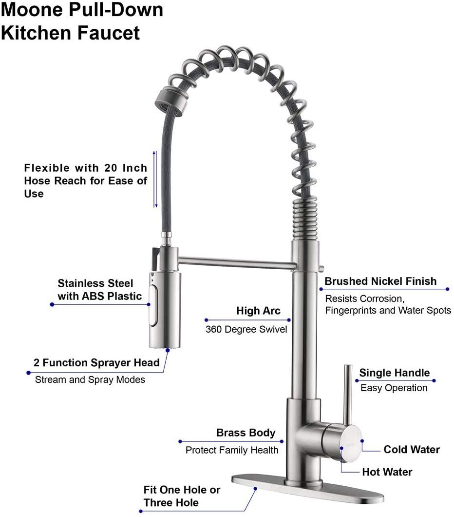KITCHEN SINK FAUCET, SINGLE LEVER, MULTI-SPRAY, 360 DEGREE TURNING ON HANDLE, ALL PARTS CONFIRMED, INSTRUCTION MANUAL INCLUDED