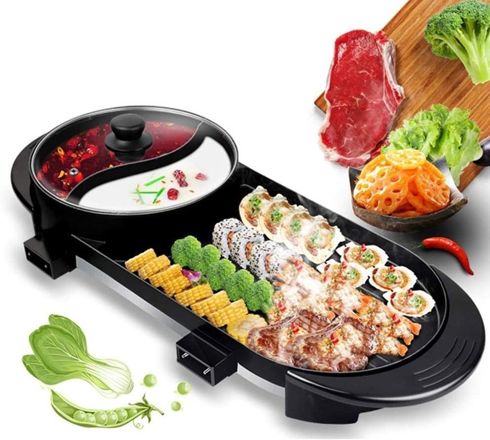 GRILLE AND HOT POT, SELF HEATING HOT POT, INDEPENDANT DUAL POWER SUPPLY, TESTED, ALL PARTS CONFIRMED, INSTRUCTION MANUAL INCLUDED, AMZ SES